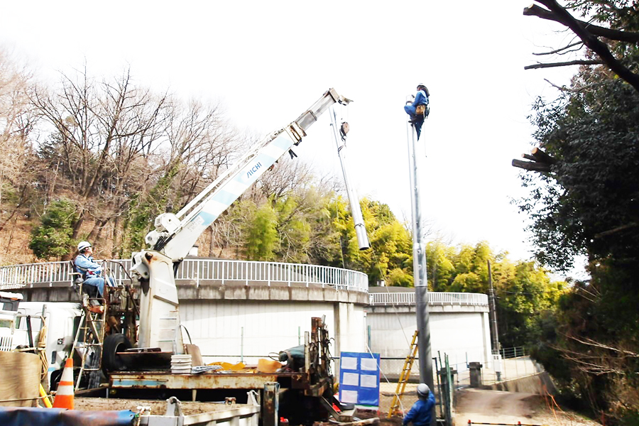 コンクリートポールや組立式のポールなど様々な種類の柱に対応した建柱工事に対応可能です。